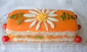 En ésta en lugar de ponerle pimientos de piquillo al puré, solamente le puse un trozo de pimiento morrón, por eso no tiene el color tan fuerte.